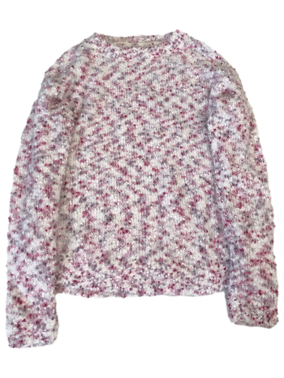 She will love the fuzzy soft feel of this pretty white, pink, & purple pastel pull-over sweater!