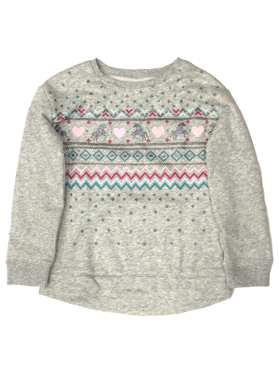 - Girls Gray Sparkle Unicorn Heart Holiday Sweatshirt Sweat Shirt