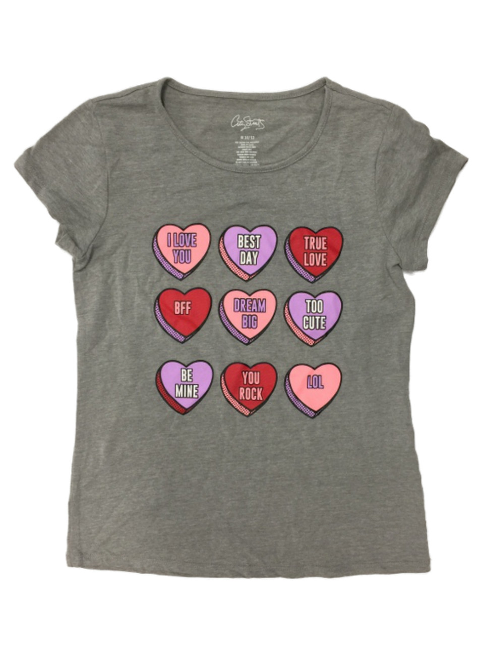 - Girls Gray Valentines Candy Hearts Pink Red True Love Be Mine T-Shirt Top