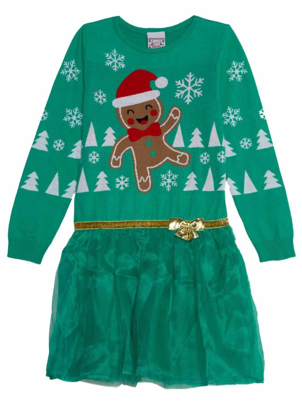 - Girls Green Gingerbread Man Cookie Christmas Holiday Sweater Dress