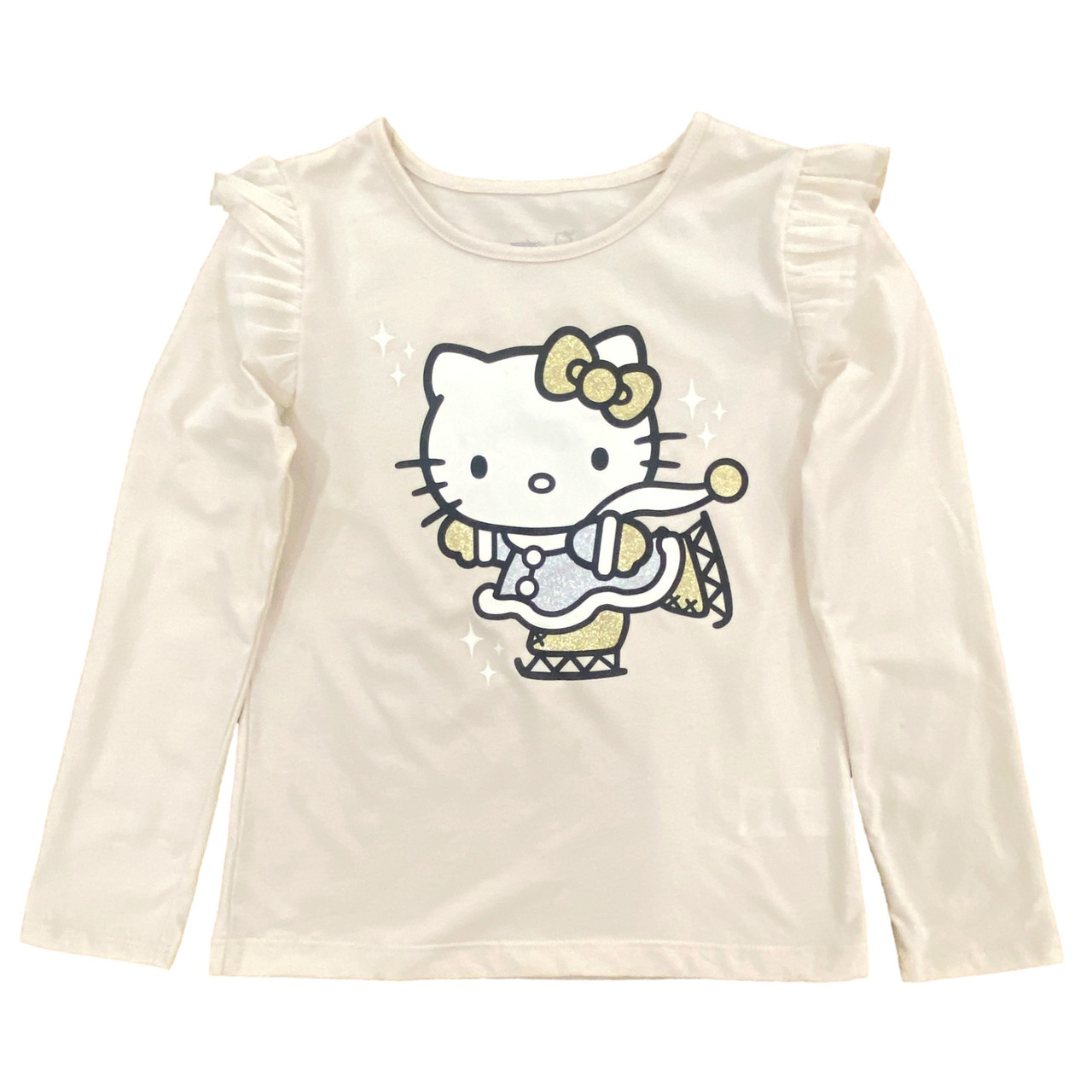 - Girls Hello Kitty Ice Skating Ruffle Long Sleeve Cream T-Shirt Tee