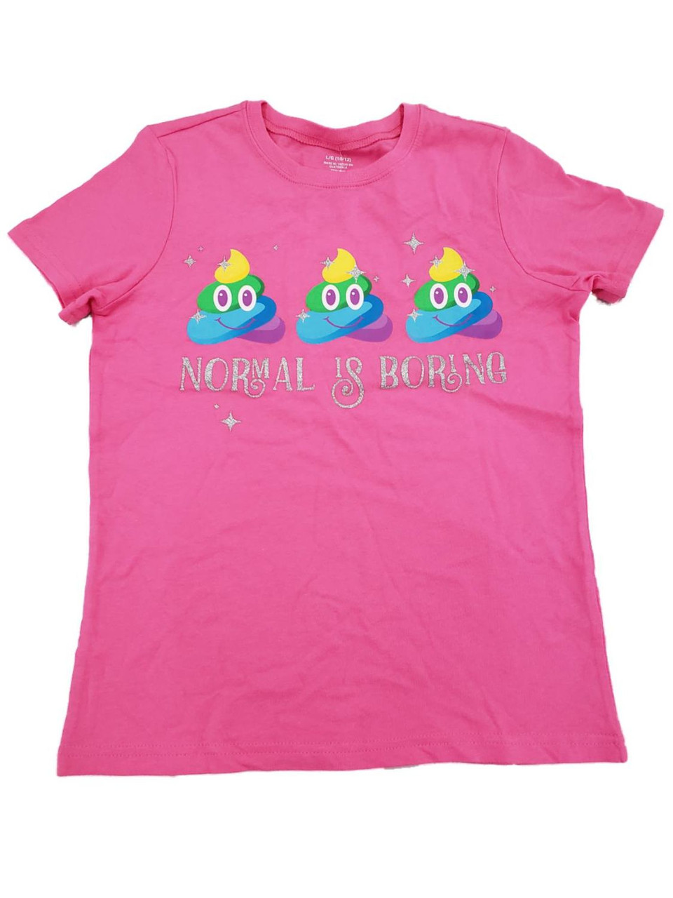 - Girls Pink Normal Is Boring Rainbow Poop Emoji Tee Shirt Top T-Shirt