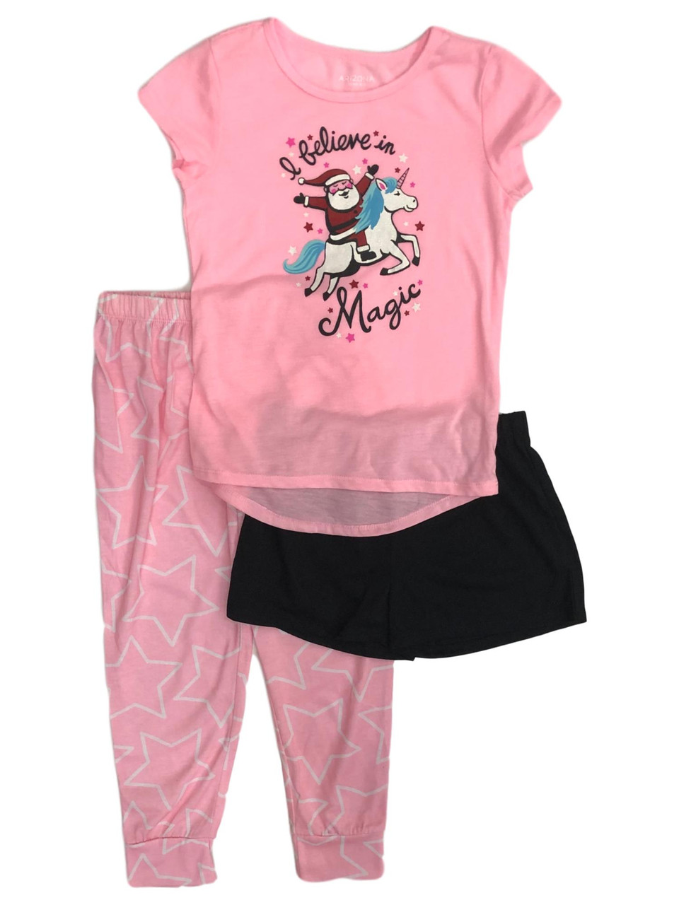 - Girls I Believe In Magic Pajamas 3pc Santa & Unicorn Holiday Sleep Set