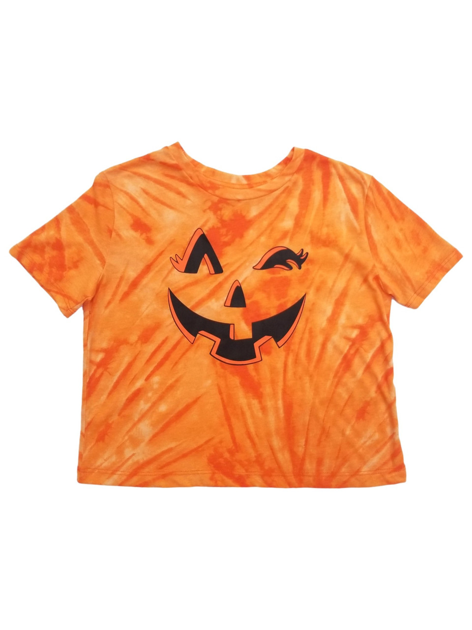 She will love wearing this cute, orange, winking Jack-o-Lantern t-shirt for Halloween!