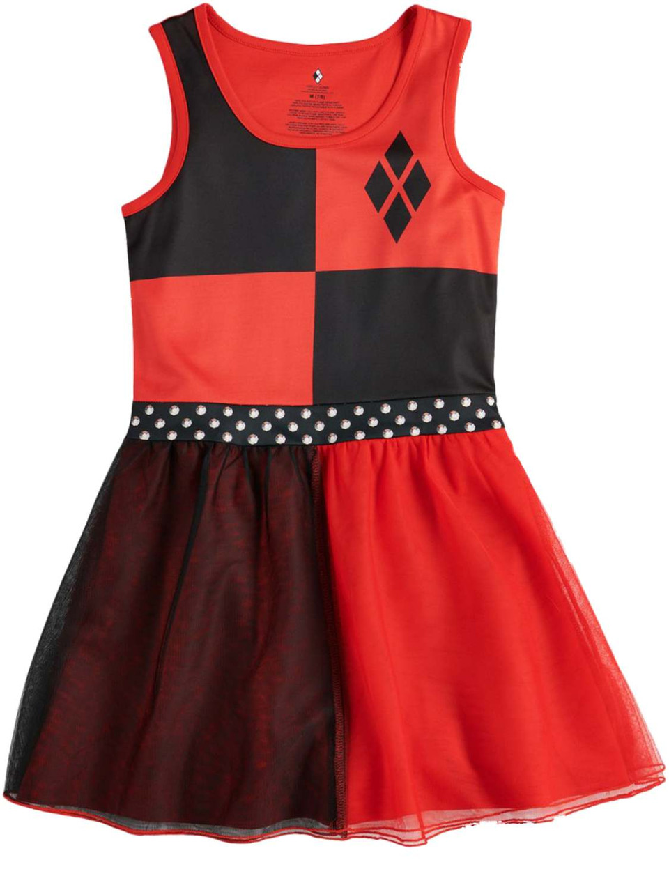 - Girls Marvel Harley Quinn Black Red Diamond Nightgown Sleep Shirt