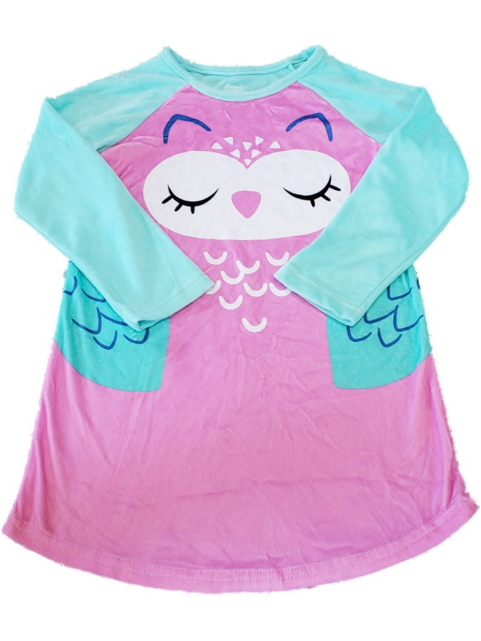 - Girls Pink & Blue Sleepy Owl Super Soft Bird Nightgown Sleep Dress Pajama Gown
