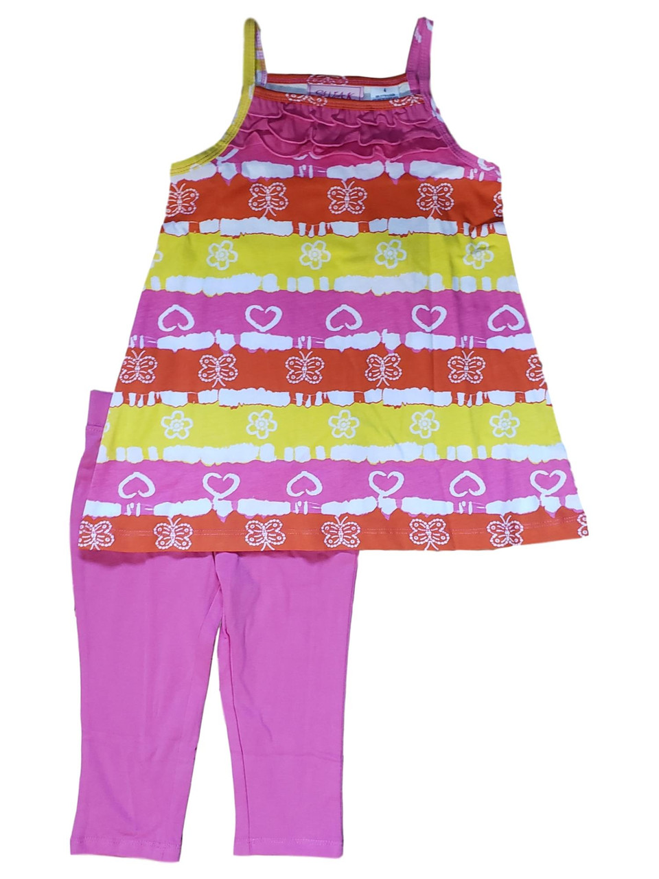 - Girls Pink Hearts & Butterflies Tank Top & Leggings 2 Piece Set Outfit