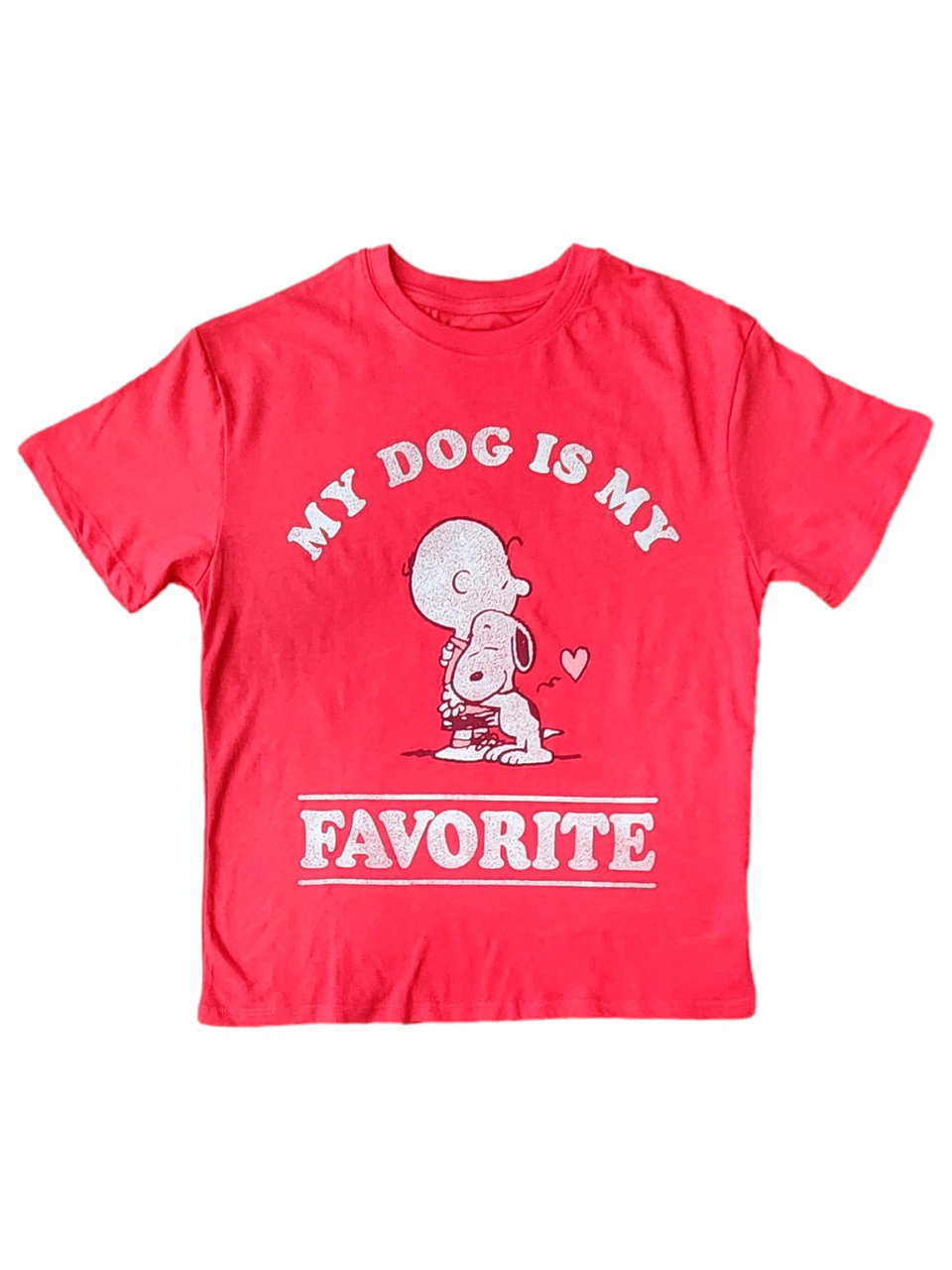 - Girls Pink Peanuts Snoopy "My Dog Is My Favorite" Tee Shirt T-Shirt