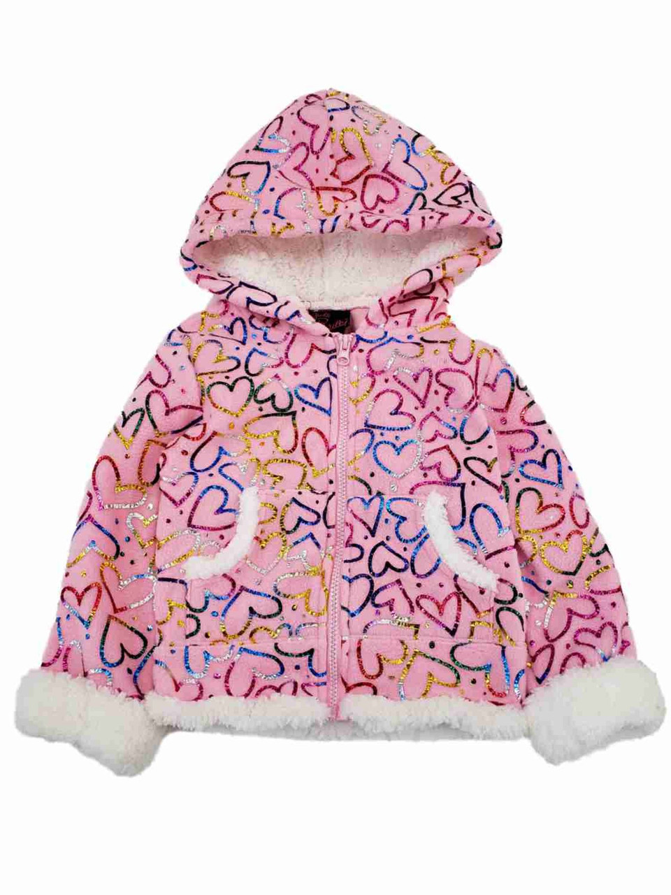 - Girls Pink White Foil Shiny Heart Hearts Jacket Hooded Winter Snow Coat