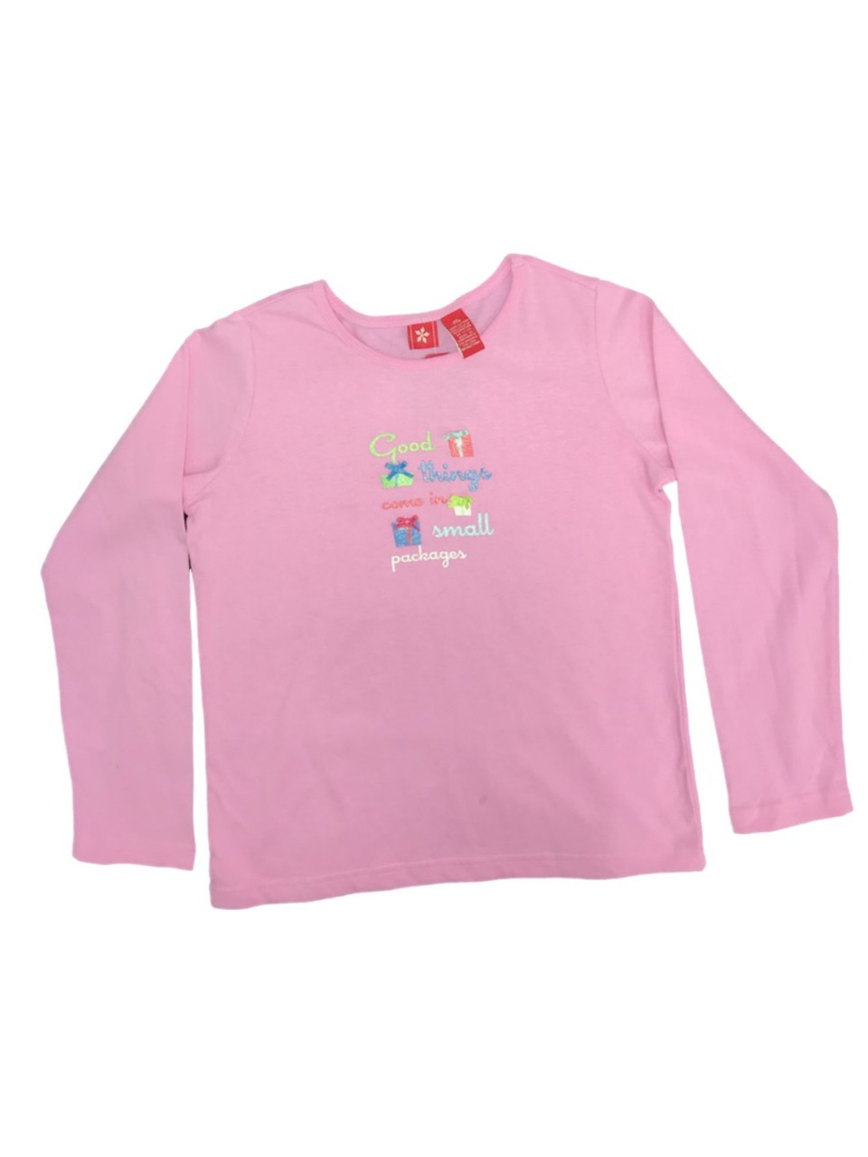 This adorable girls pink with presents "Good things come in small packages" Christmas shirt is sure to be a holiday favorite!