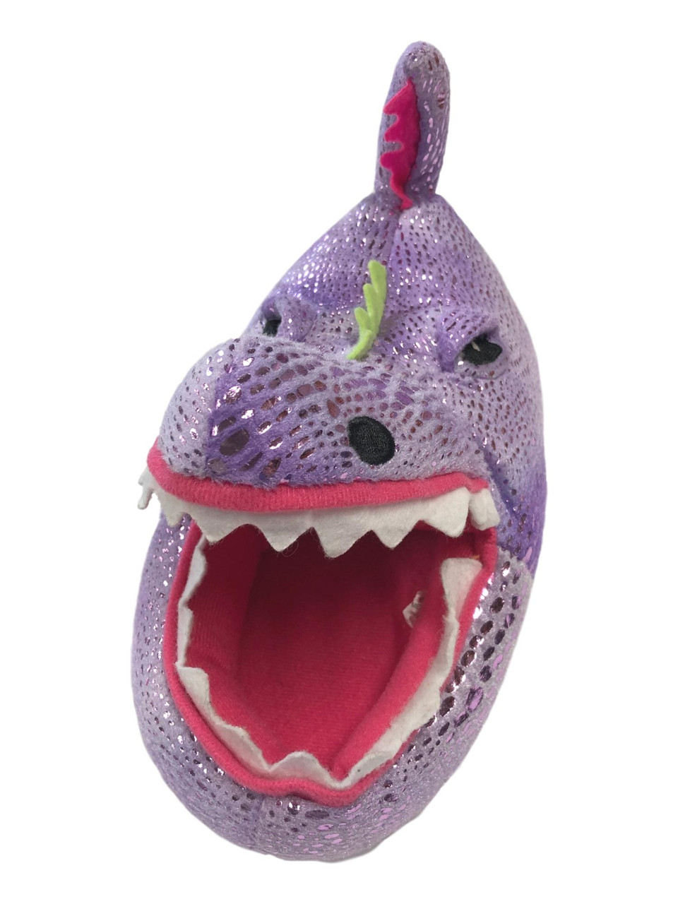 Girls Purple Sparkle Dinosaur Slippers Dino Biter House Shoes