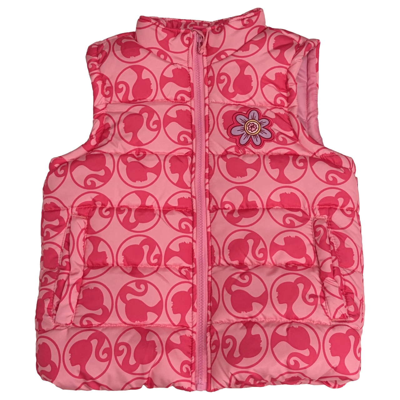 - Girls Quilted Pink Zip Front Barbie Vest Jacket