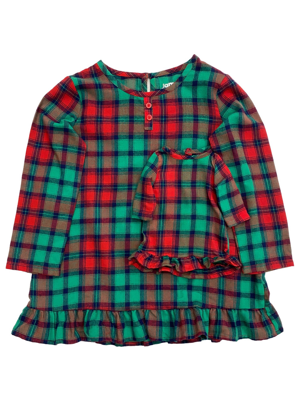 - Girls Red & Green Plaid Flannel Christmas Holiday Nightgown & Doll Gown