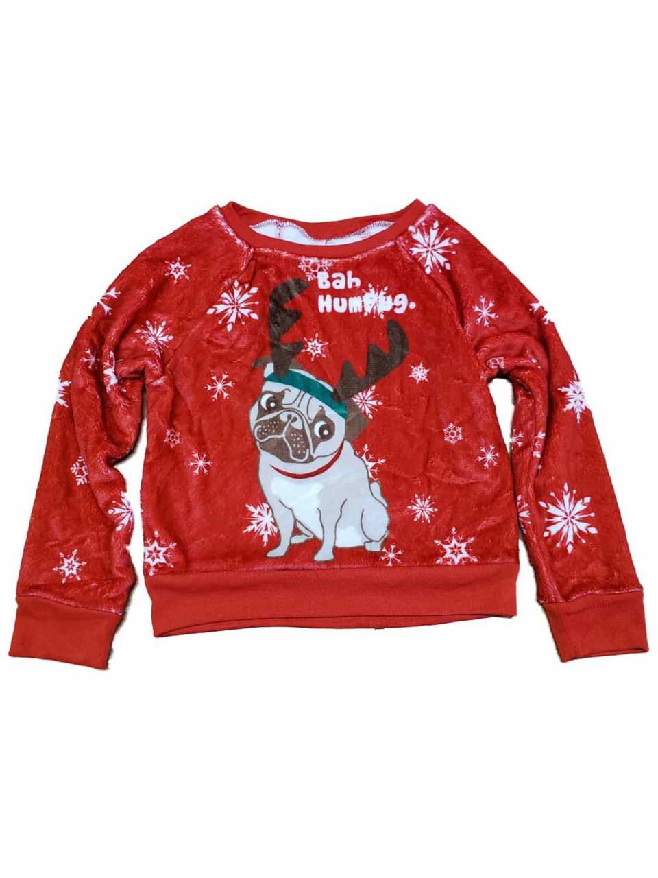- Girls Red Holiday Christmas Pug Dog Plush Fuzzy Sweatshirt Sweat Shirt