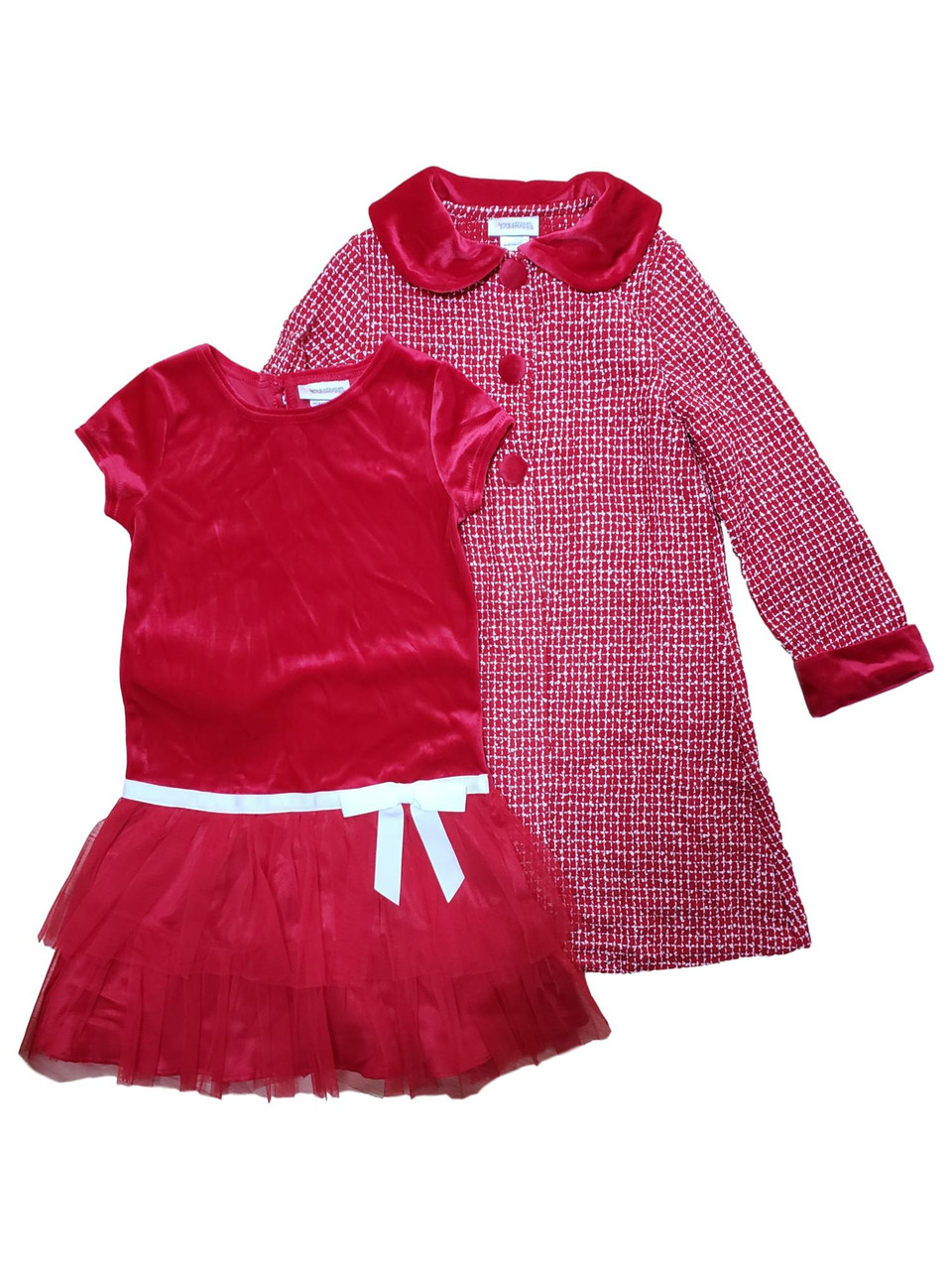 - Girls Red Plaid Dressy Coat & Ruffled Tulle Christmas Party Dress 2 Piece Set