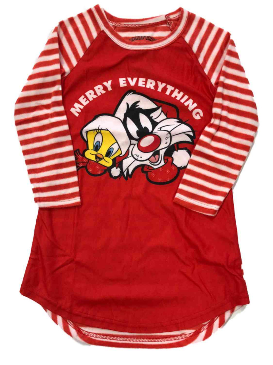 - Girls Red Sylvester The Cat & Tweety Bird Nightgown Christmas Sleep Shirt XS 4-5