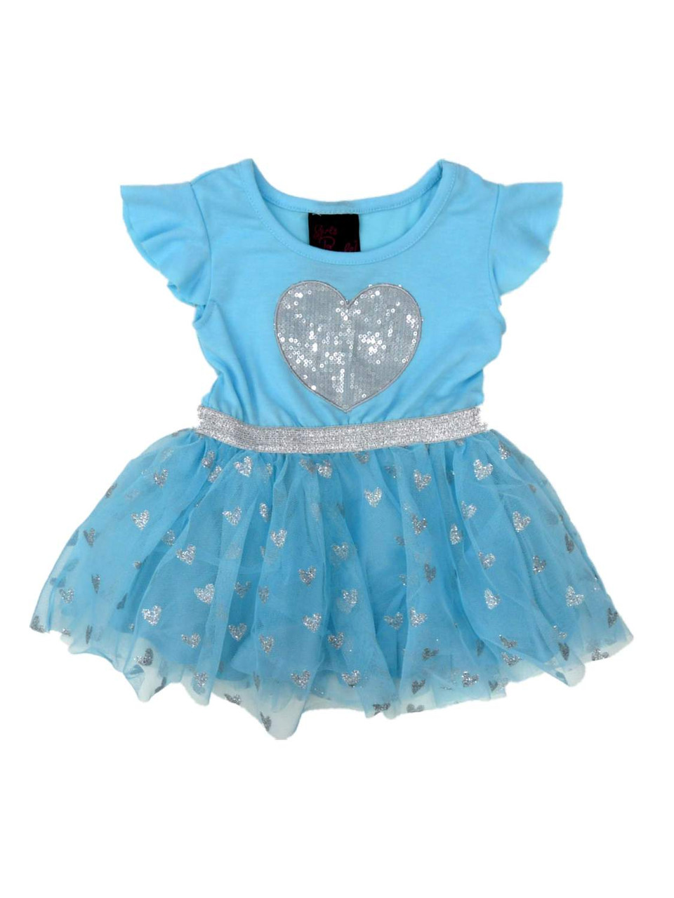 - Girls Rule! Infant Toddler Girls Blue Silver Sequin Heart Tulle Tutu Dress