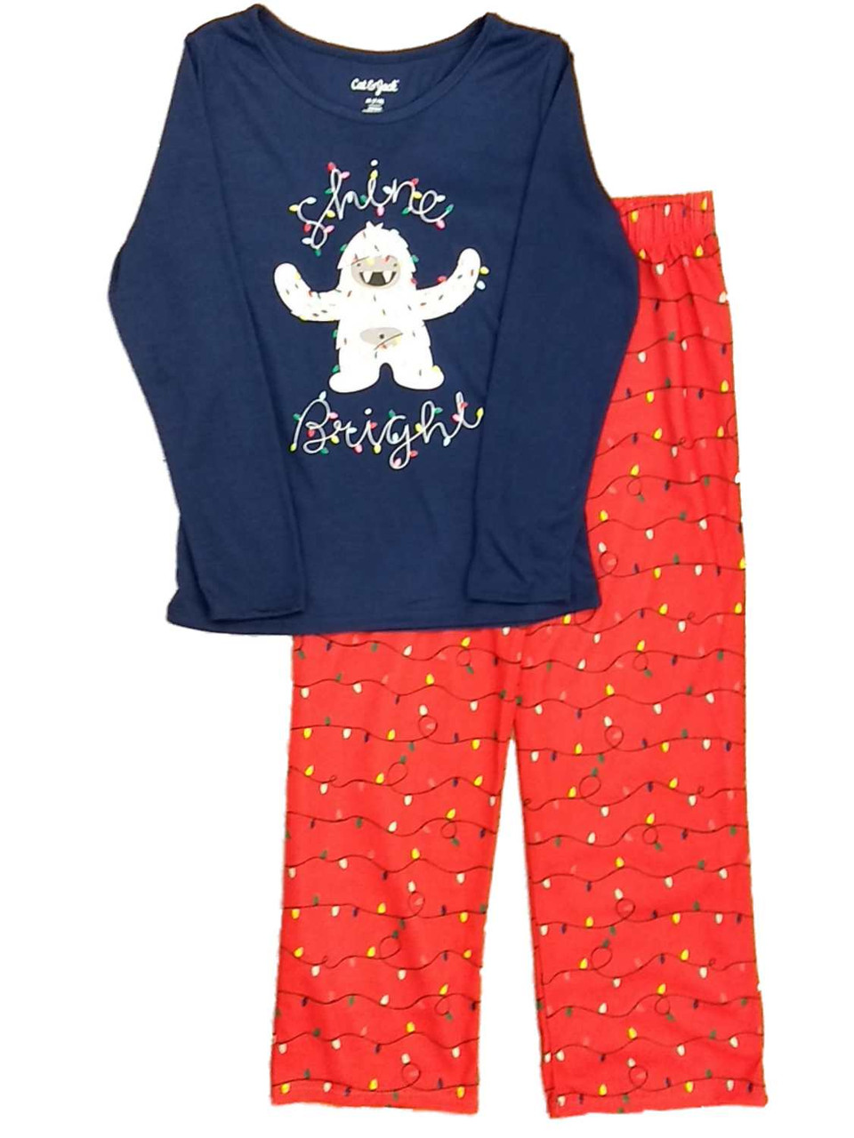 - Girls Shine Bright Holiday Pajamas Christmas Yeti Snowman Sleep Set M 7-8