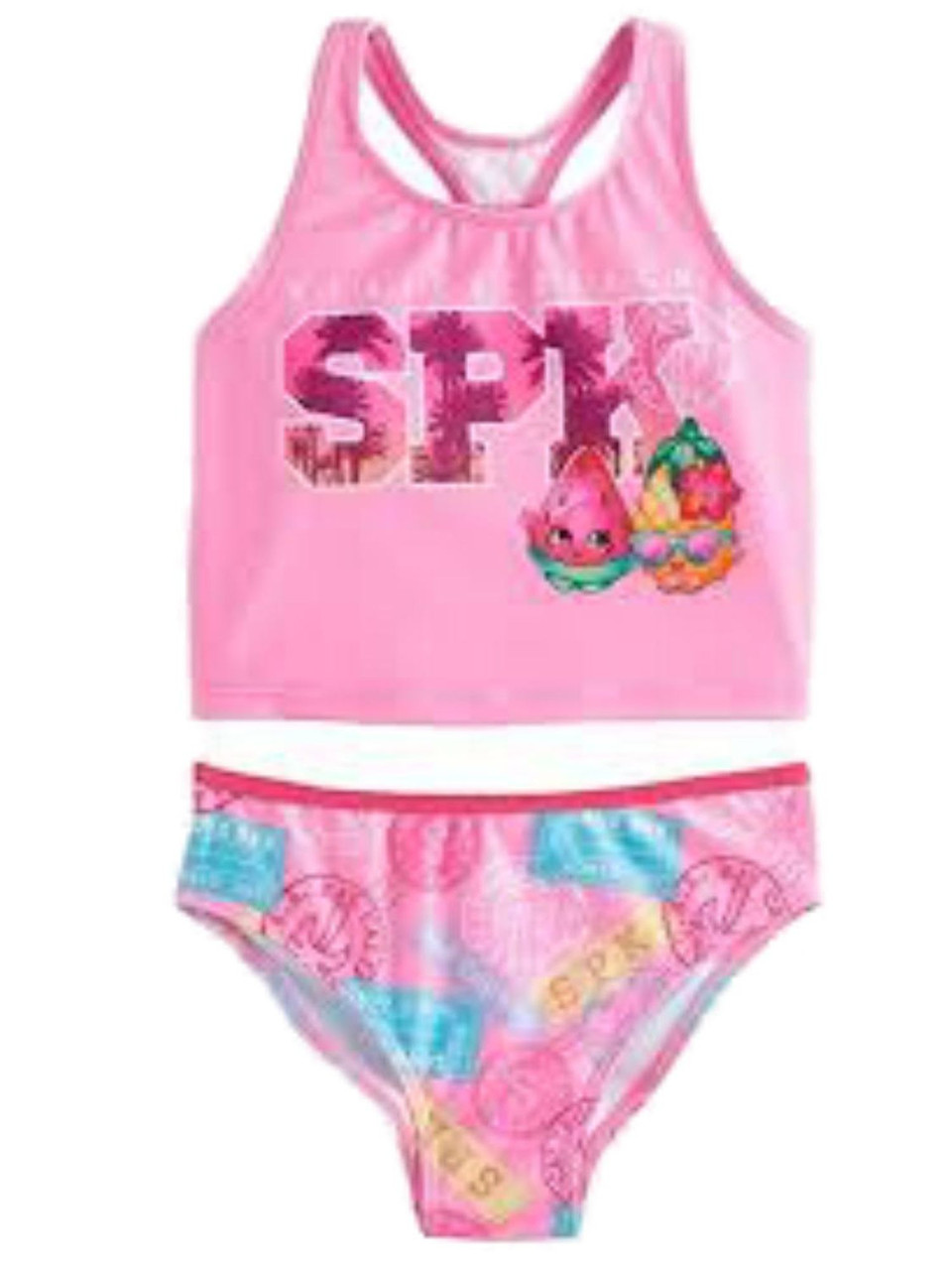 - Girls Shopkins Pink Venice Beach Tankini Swimming Swim Suit Two 2 Piece