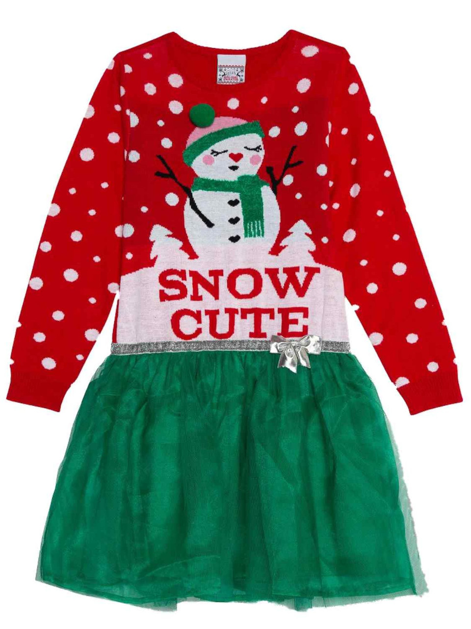 - Girls Snow Cute Snowman Red Green Christmas Holiday Tutu Tulle Sweater Dress