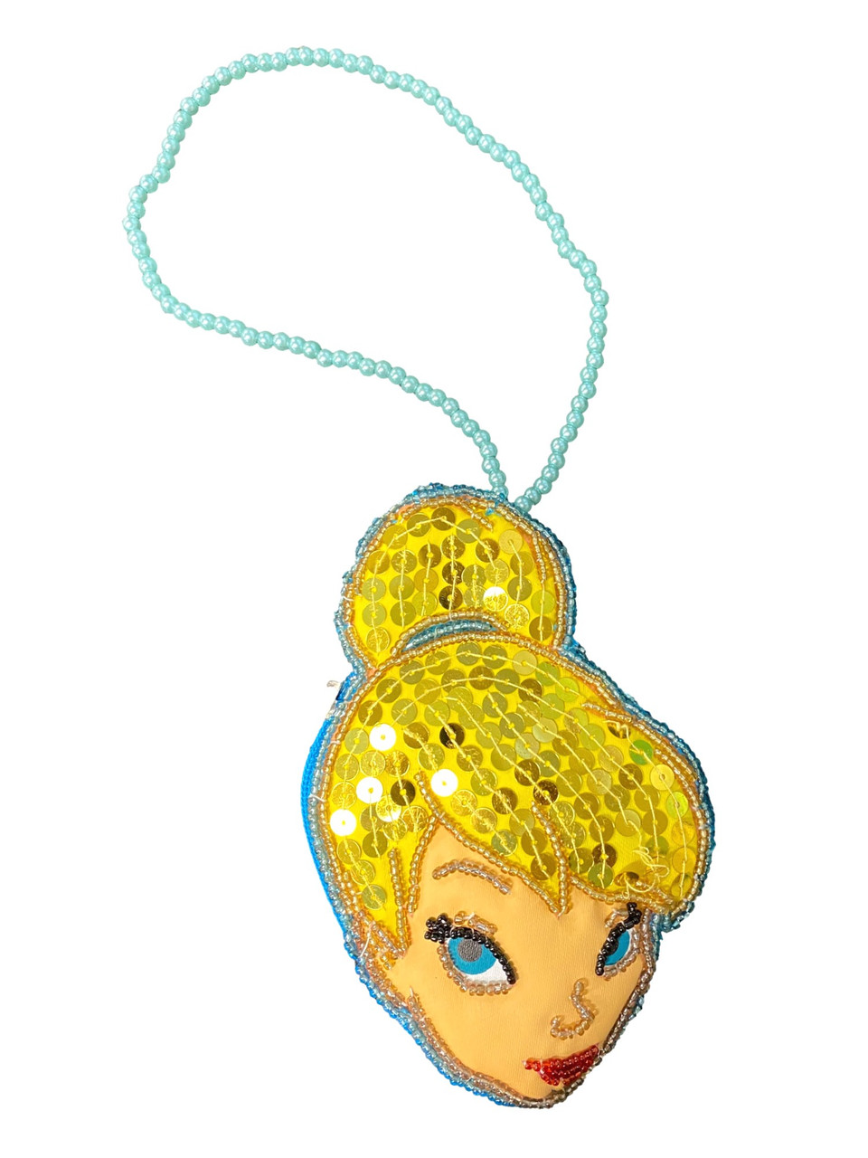 Tinker Bell blue bead & sequin coin purse. It has a zipper opening, perfect for storing those secret little items.