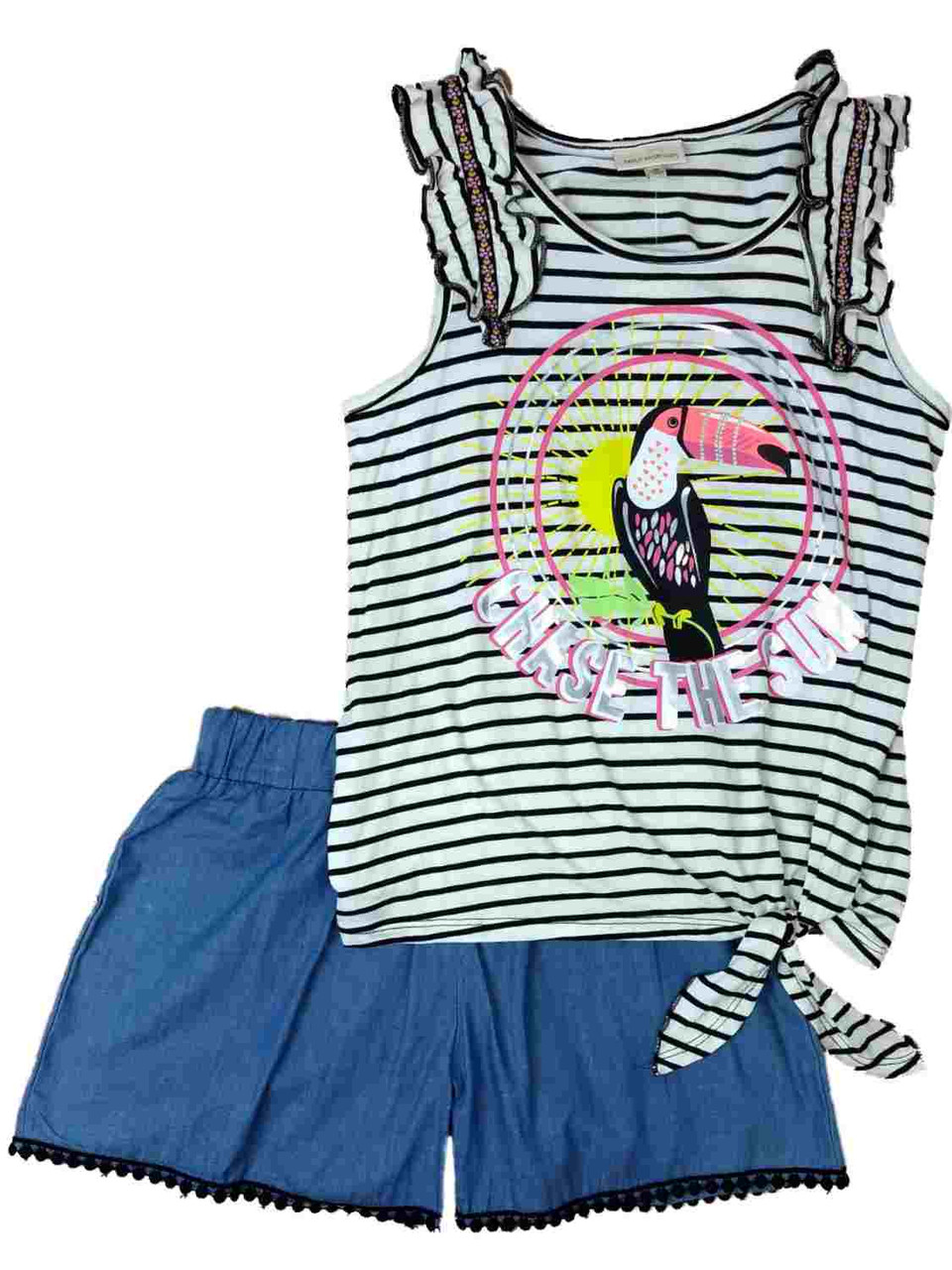 - Girls Toucan Outfit Stripe Chase The Sun Shirt & Blue Chambray Shorts Set