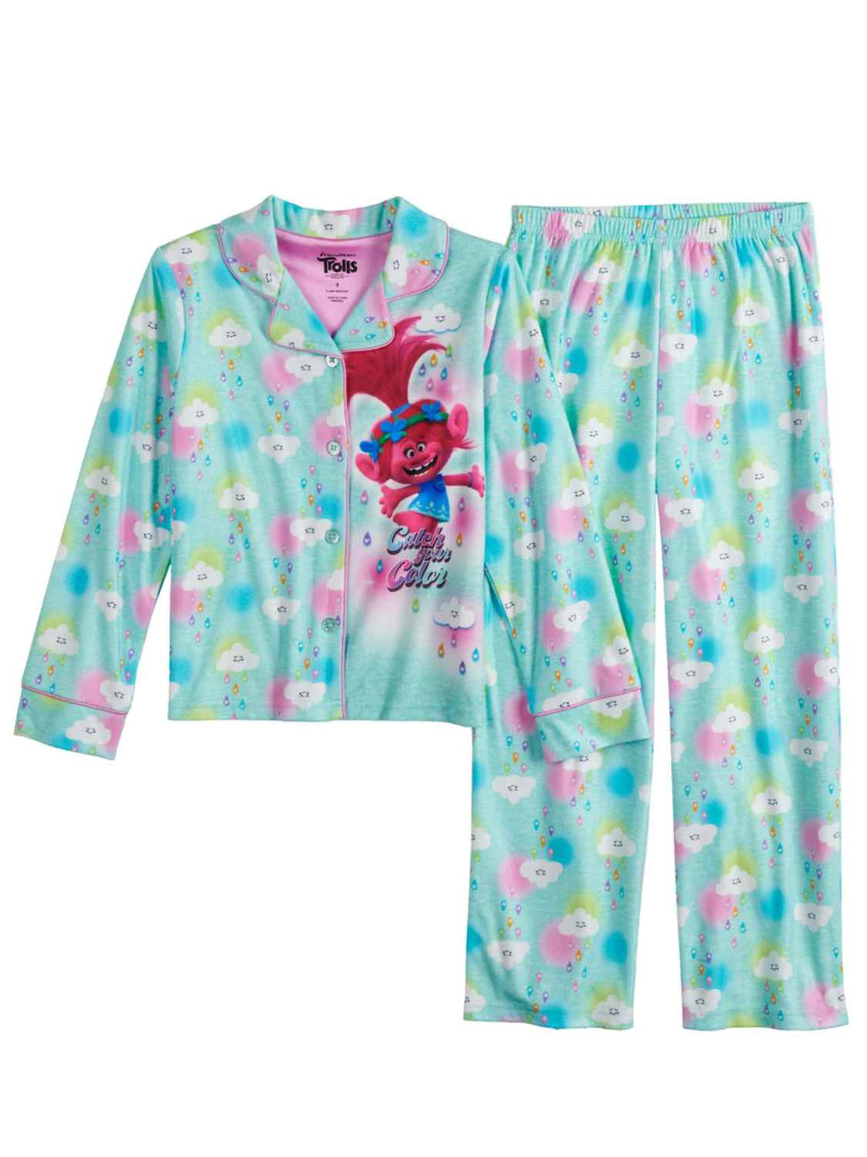 - Girls Trolls Poppy Cloud Catch Your Color Button Up Pajamas Sleep Set 4