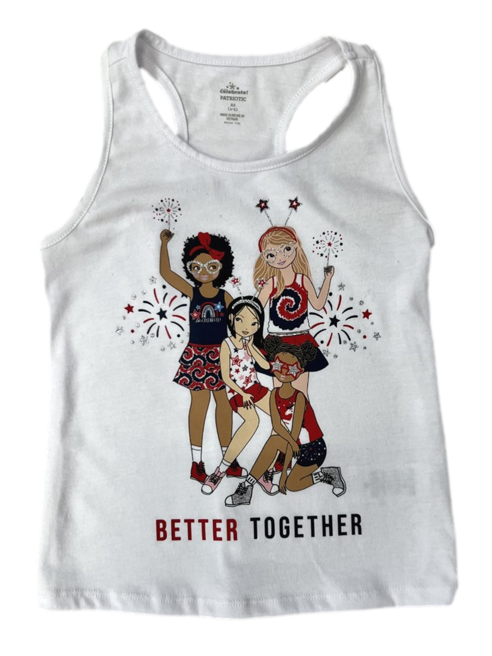 - Girls White Better Together 4th Of July Tank Top Patriotic Shirt