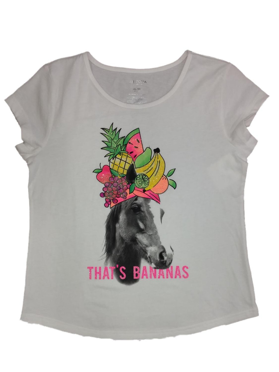 This cute white glitter "That's bananas" horse themed t-shirt is sure to be a favorite!