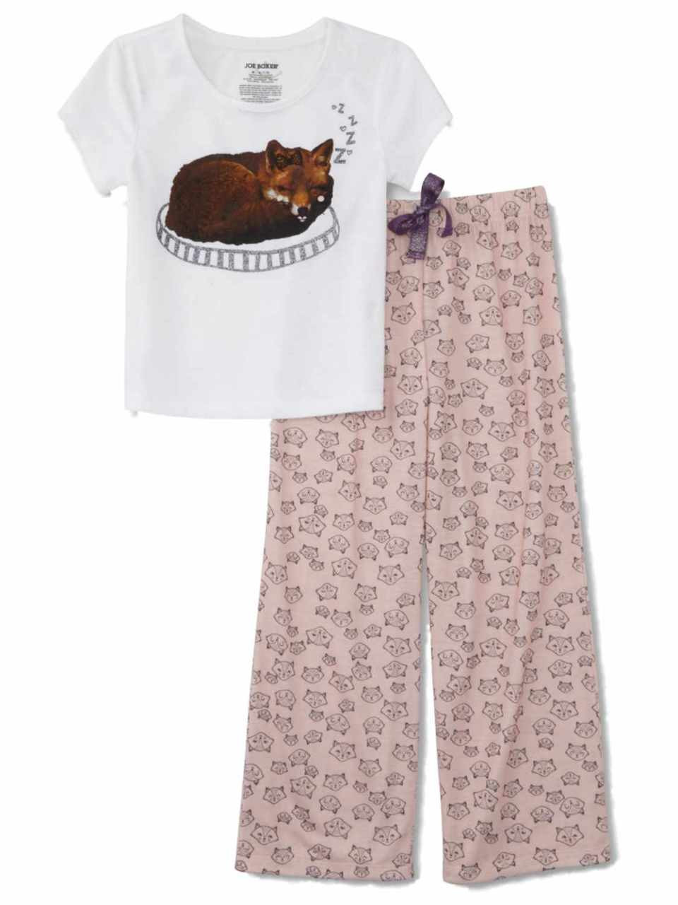- Girls White & Pink Sleepy Fox Pajamas Lightweight Sleep Set