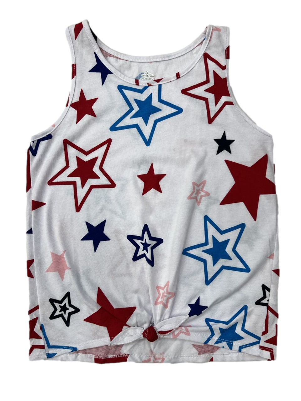 - Girls White Red Blue 4th Of July Star Knotted Patriotic Tank Top Shirt