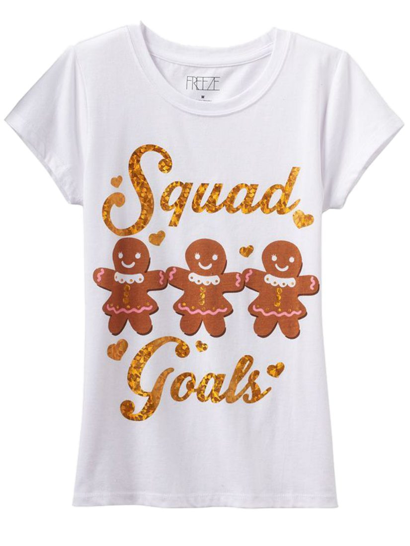 - Girls White Squad Goals Holiday T-Shirt Gingerbread Man Christmas Tee Shirt