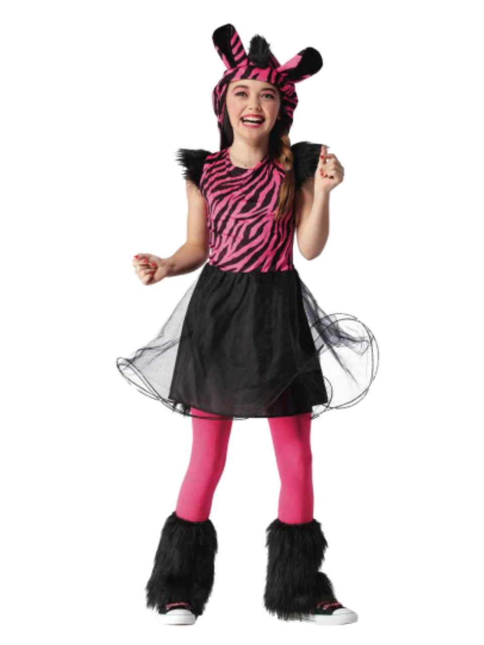 This super cute Zebra costume is perfect for Halloween! Includes dress, hood, tail & leg warmers. (All other accessories not included.)