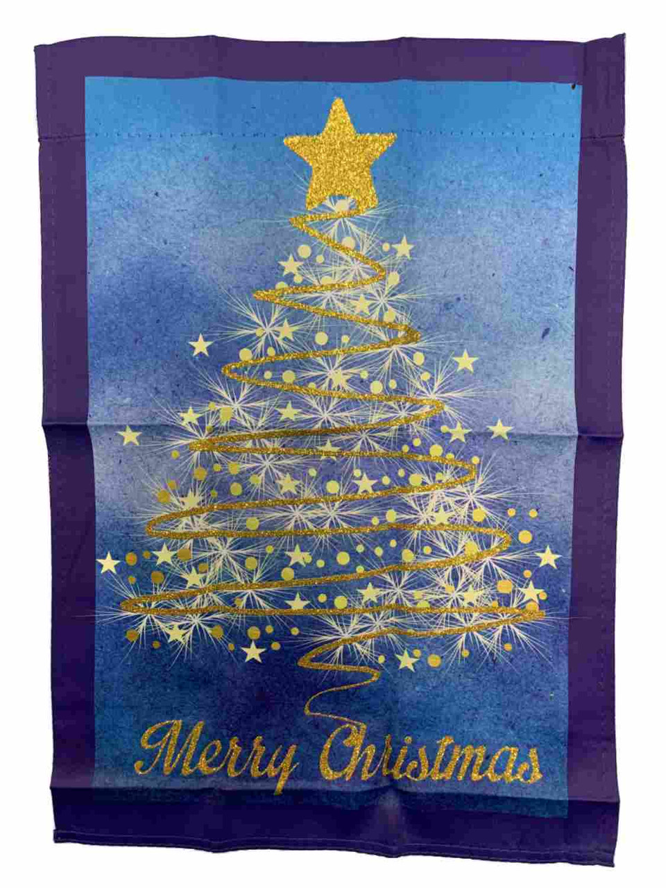 - Gold Christmas Tree Blue Holiday Decorative Garden Suede Flag 18 x 12.5 Inch