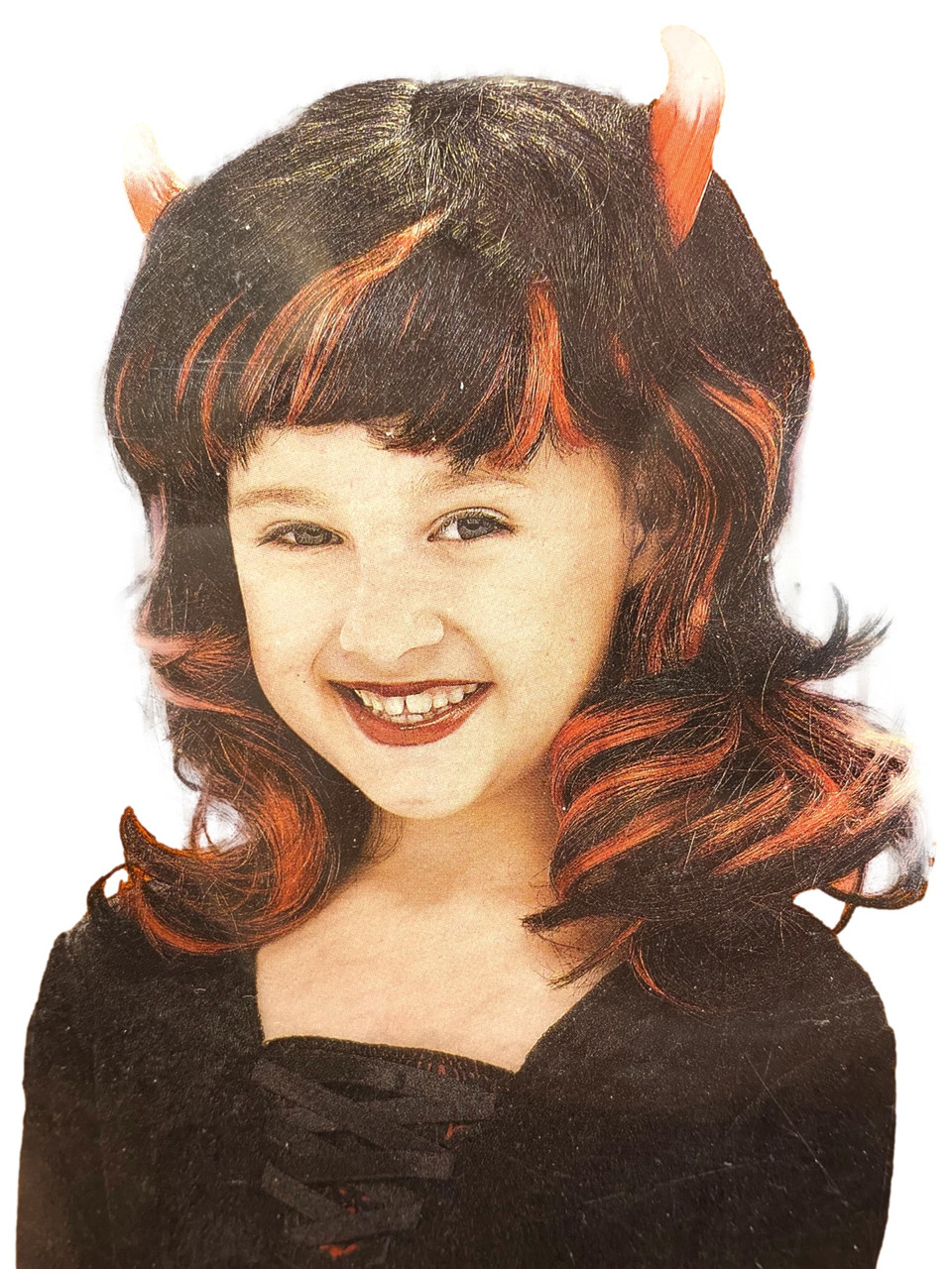 Womens Curly Red Devil Wig with Horns Long Wavy Hair