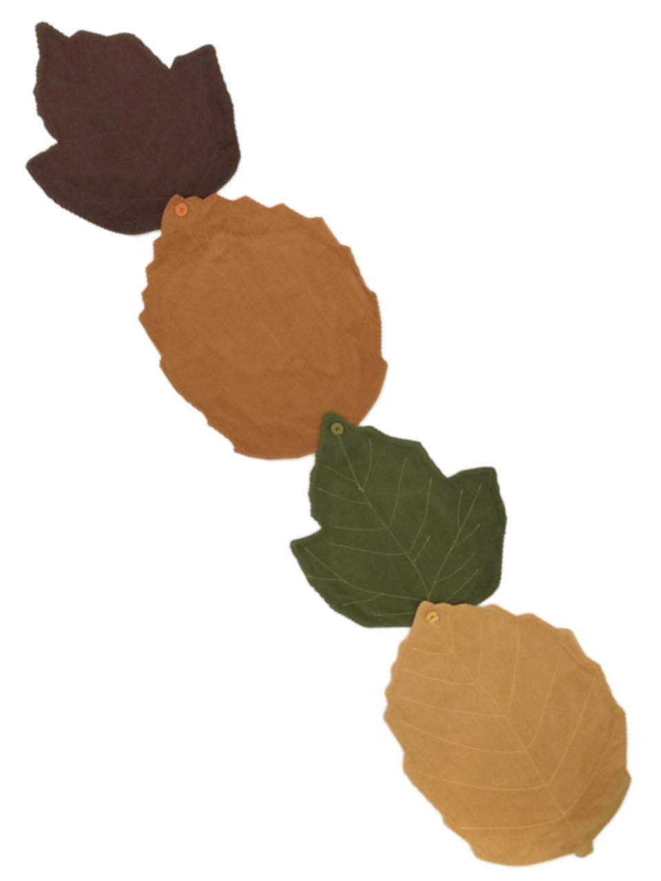 This Harvest Treasures table runner has four corduroy autumn leaves. Use as a table runner or disconnect and use as four individual placemats. It is a great look and will add style to any table