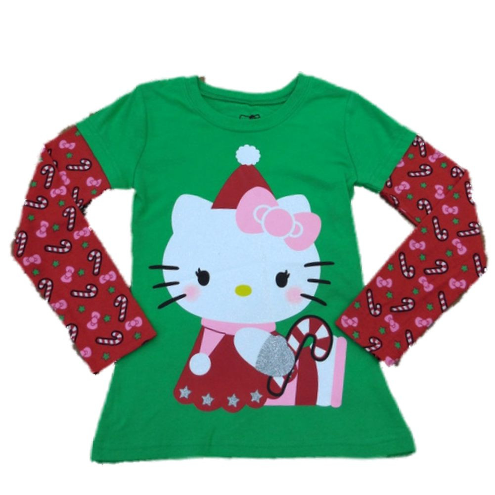 - Hello Kitty Girls Green Holiday T-Shirt Candy Cane Christmas Tee Shirt