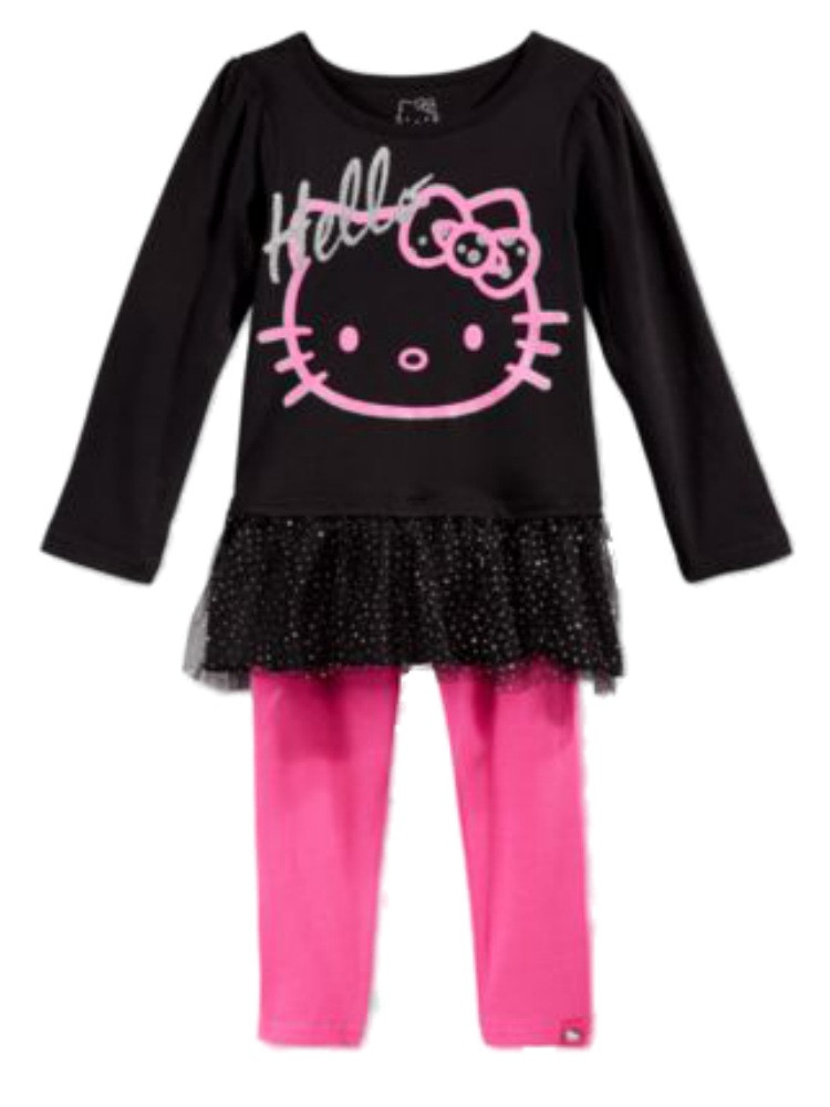 - Hello Kitty Toddler Little Girls 2 PC Set Black Glittery Shirt Pink Leggings 2T