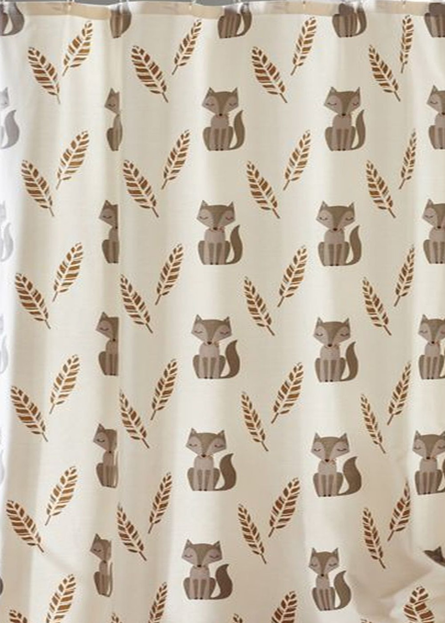 This Hip Style shower curtain has a great look. It features a darling fox pattern on a creamy ivory background. It is a great look!