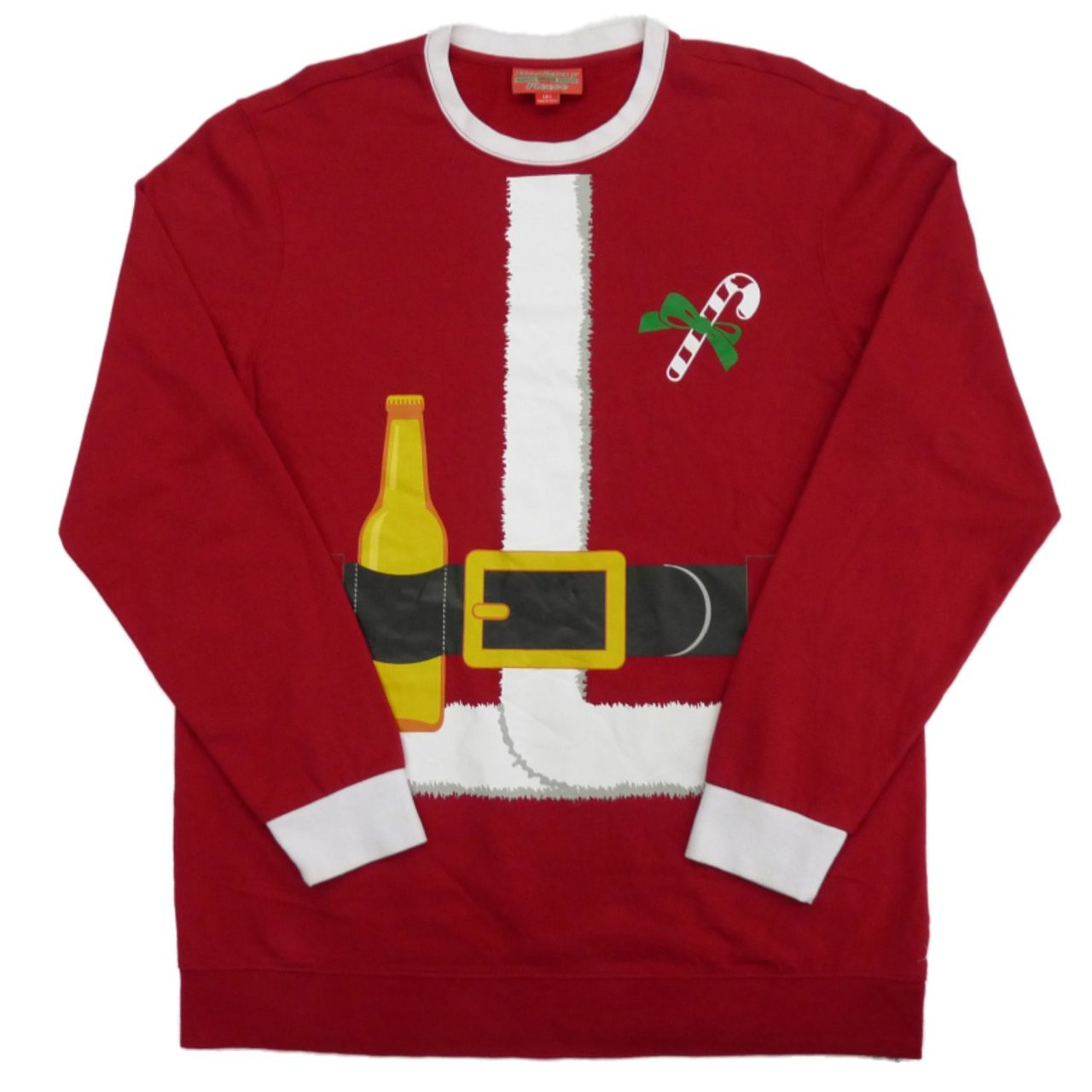 - Holiday Fleece Men Big Tall Red Santa Beer Bottle Christmas Sweatshirt