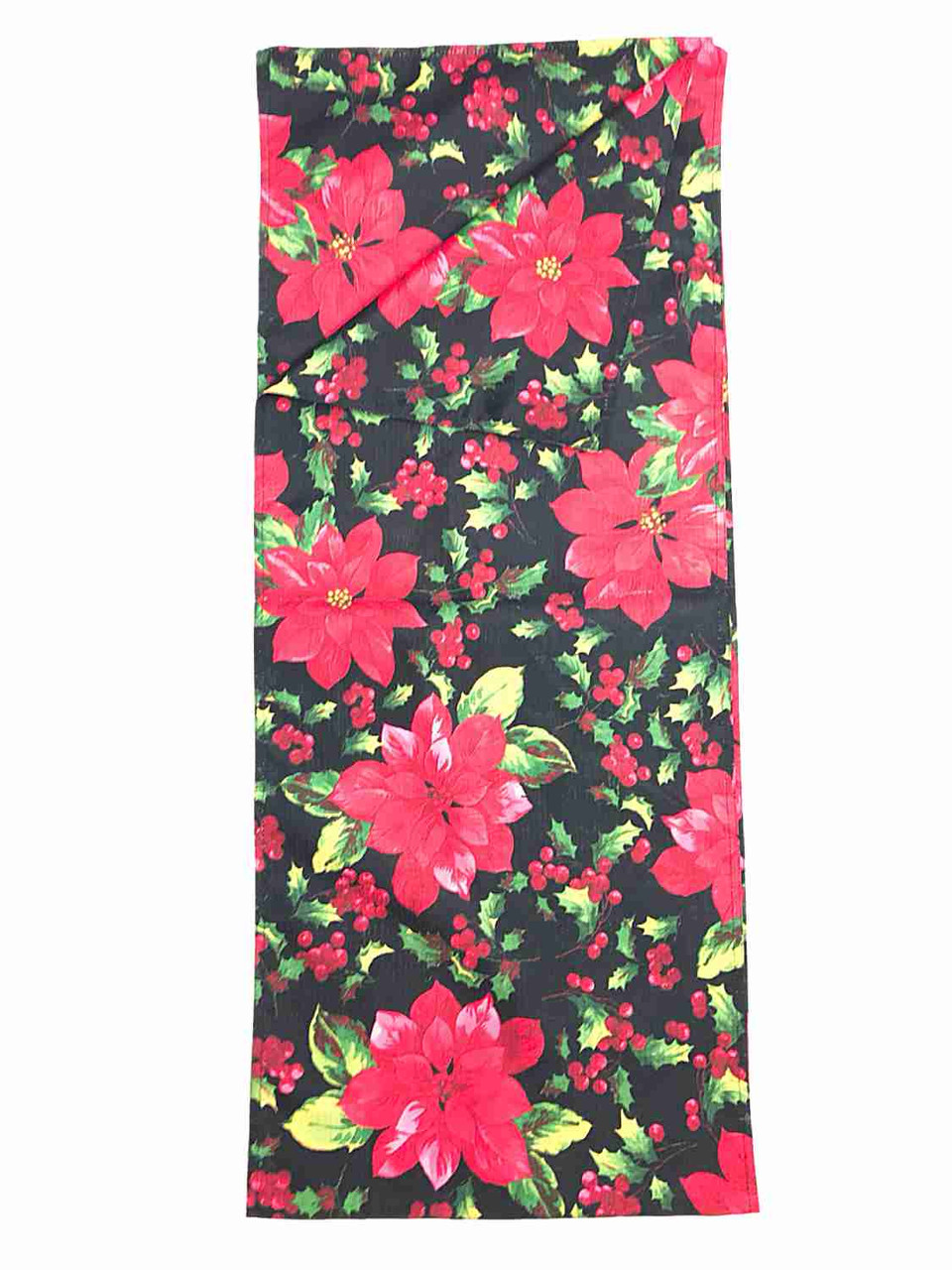 - Holiday Home Christmas Table Runner Red & Black Poinsettia With Holly 14x70