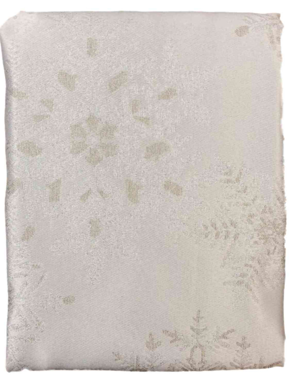 - Holiday Ivory Tablecloth With Glittering Snowflakes, Fabric Table Cloth 60x84 Ob