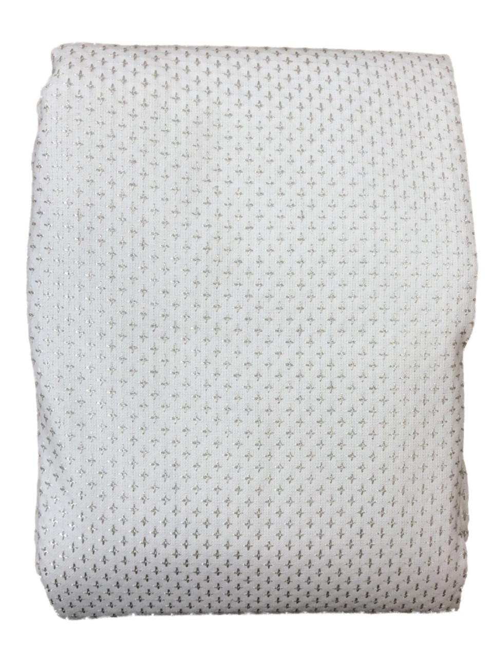 This pretty tablecloth has a great look. It is ivory in color with metallic silver fleck running through it. Perfect for your holiday table