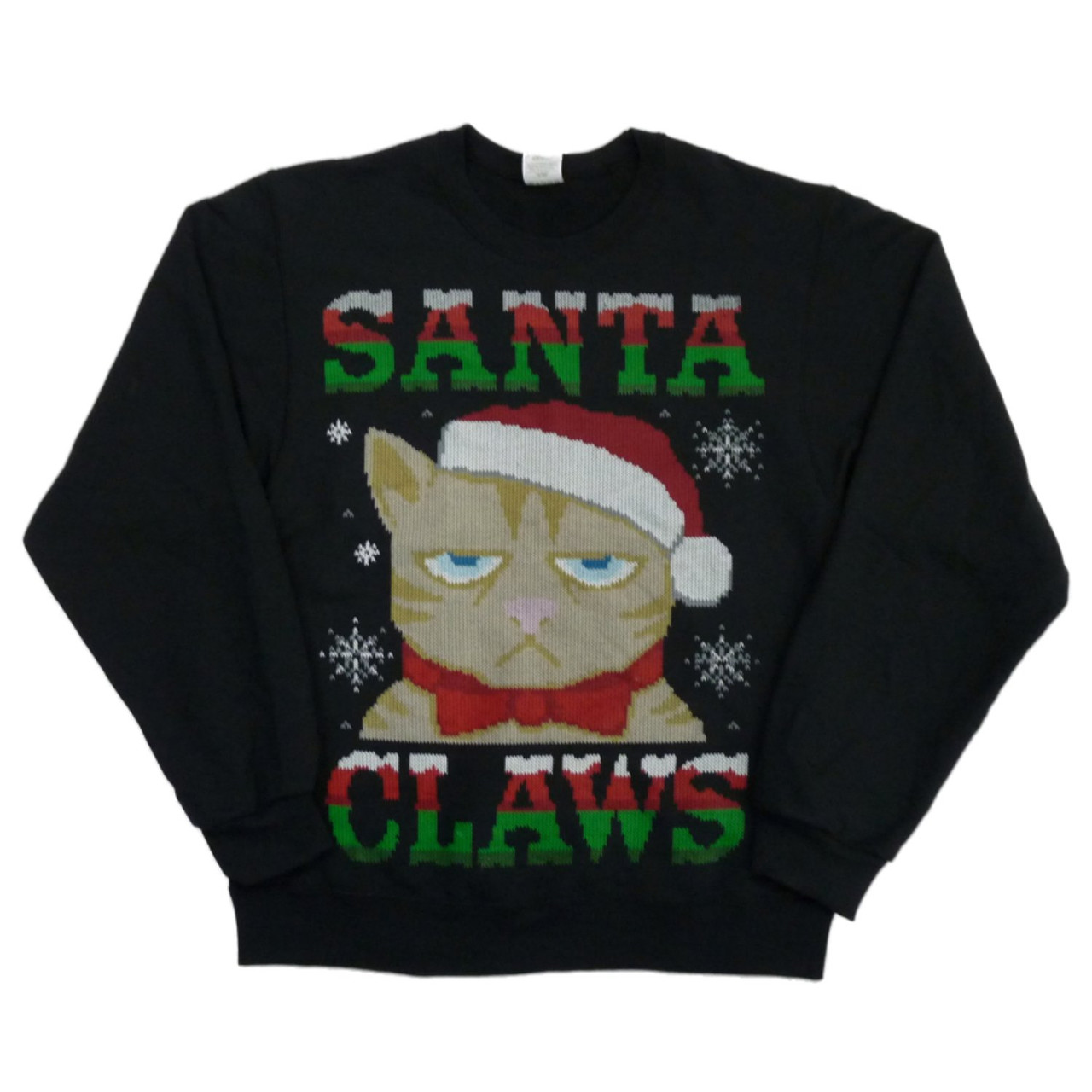 - Holiday Party Mens Black Santa Claws Christmas Kitty Cat Sweatshirt