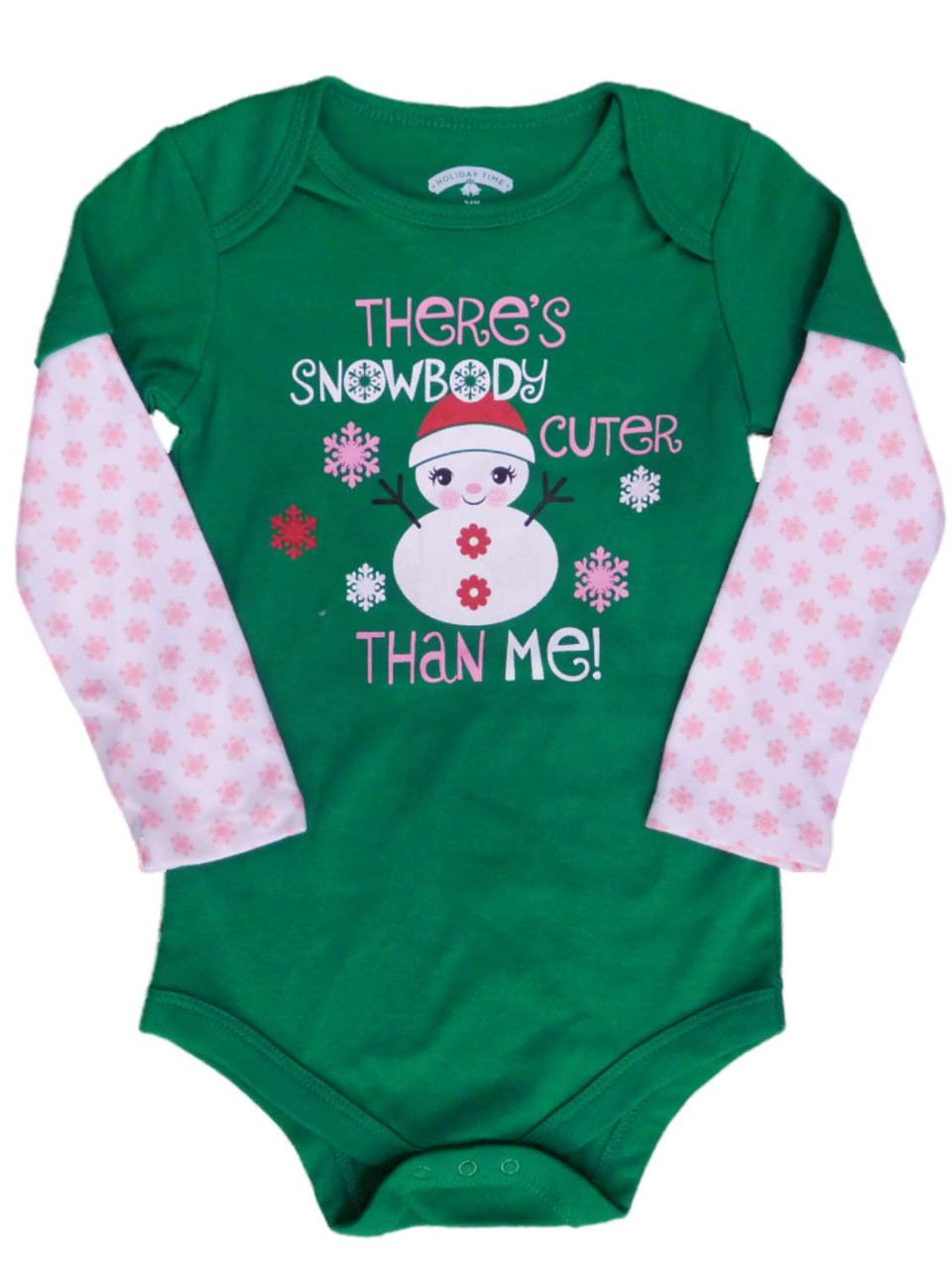 - Holiday Time Infant Girls Snowbody Cuter Than Me Bodysuit Snowman Creeper