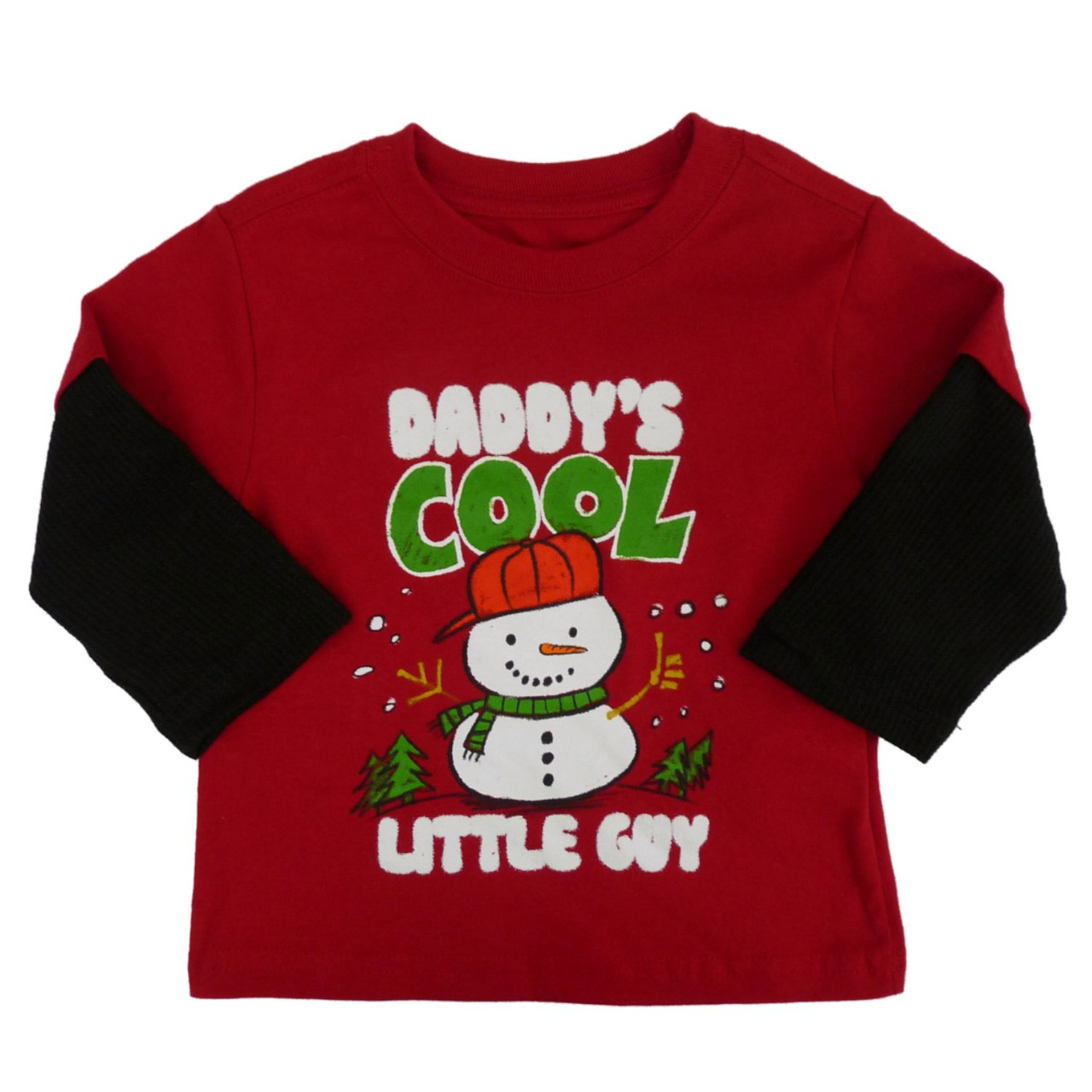 This fun holiday t-shirt has thermal sleeves and "Daddy's Cool Little Guy" graphic design.