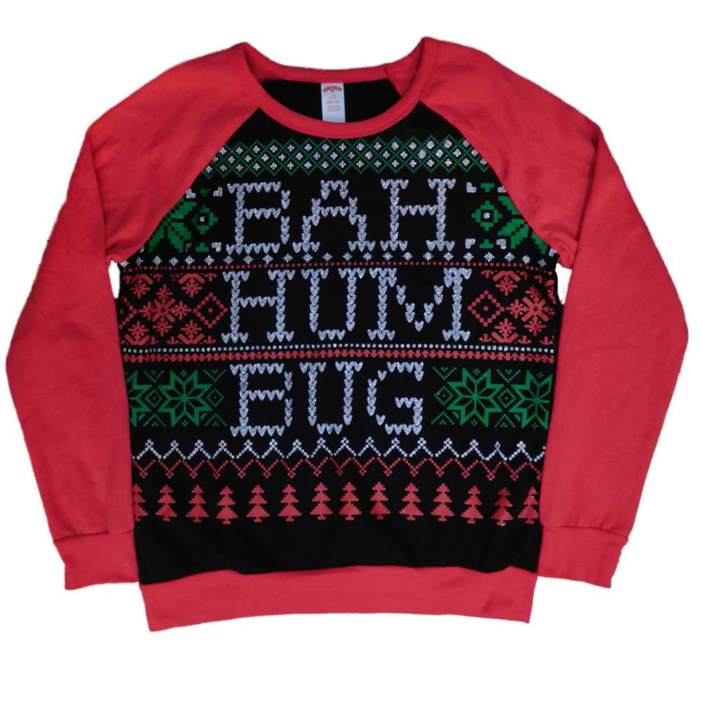 - Holiday Time Junior Womens Bah Humbug Ugly Christmas Sweater Sweatshirt Top