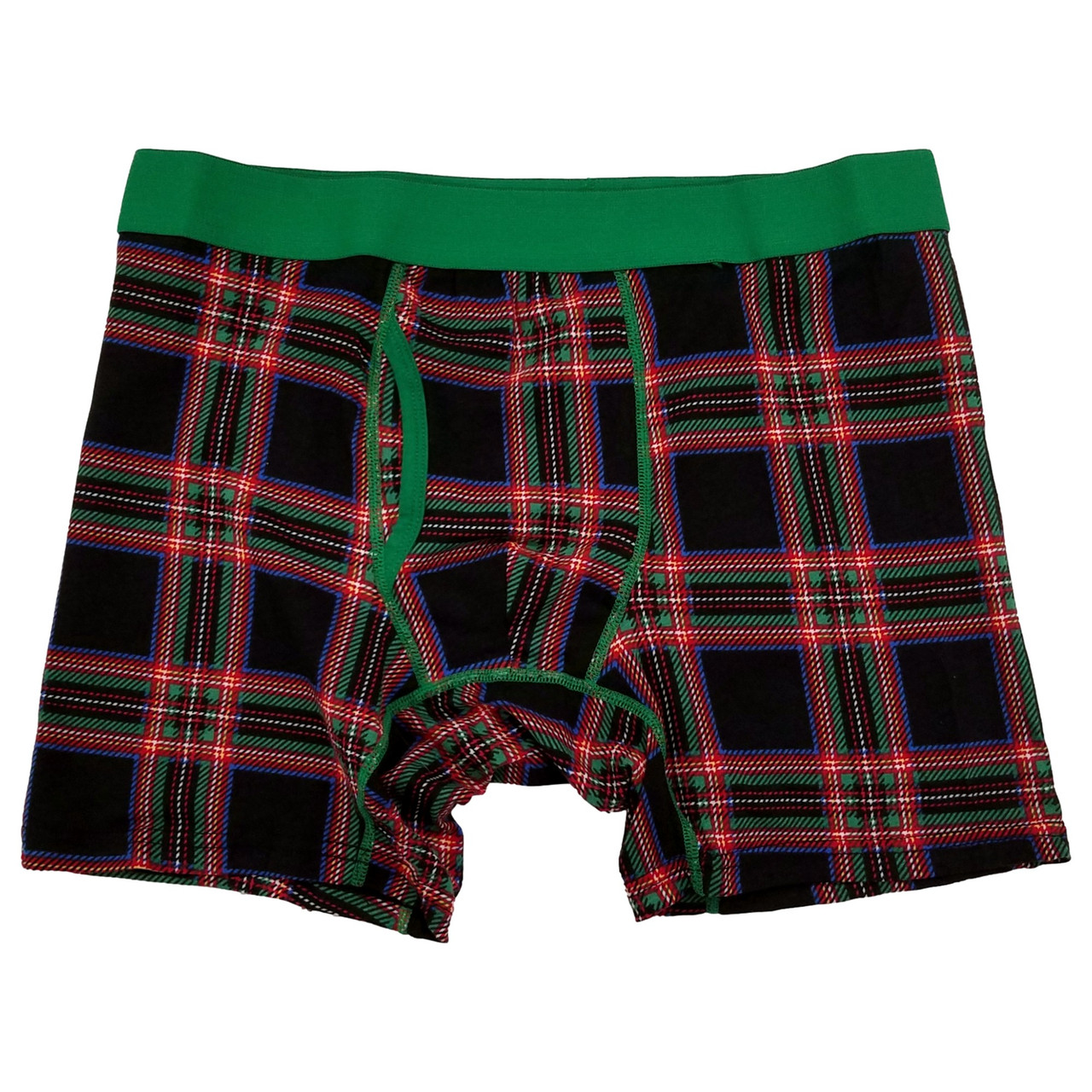 - Holiday Time Mens Black Plaid Christmas Underwear Boxer Brief