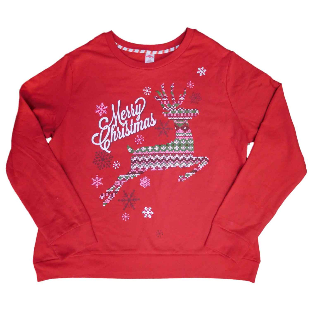 - Holiday Time Womens Plus Red Merry Christmas Reindeer Pullover Sweatshirt Top