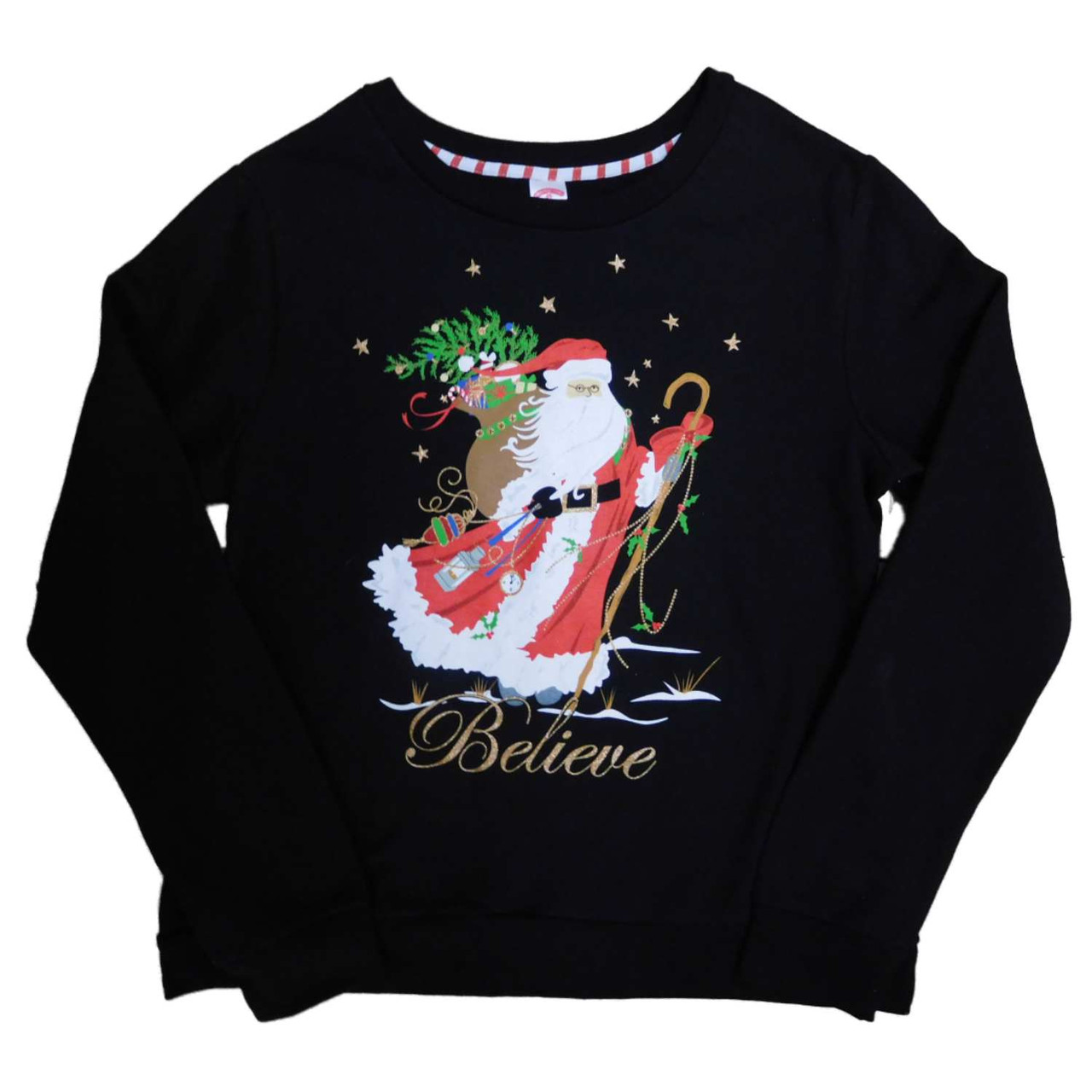 - Holiday Time Womens Santa Claus Believe Christmas Pullover Sweatshirt Top